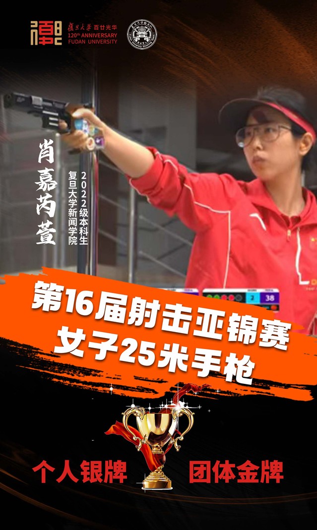 2025年8月25日,我校射击队员肖嘉芮萱在哈萨克斯坦奇姆肯特举行的第16届射击亚锦赛女子25米手枪比赛中摘得个人银牌,并与队友合作夺得该项目团体金牌。
